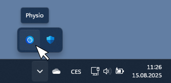 - Spusťte nainstalovaný program Physio. Program se automaticky spustí na pozadí, takže není vidět žádné okno a na první pohled to může vypadat, že se nic nestalo. Objeví se ale ikona aplikací běžících na pozadí. Kliknutím se zobrazí okno pro nastavení.